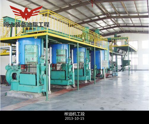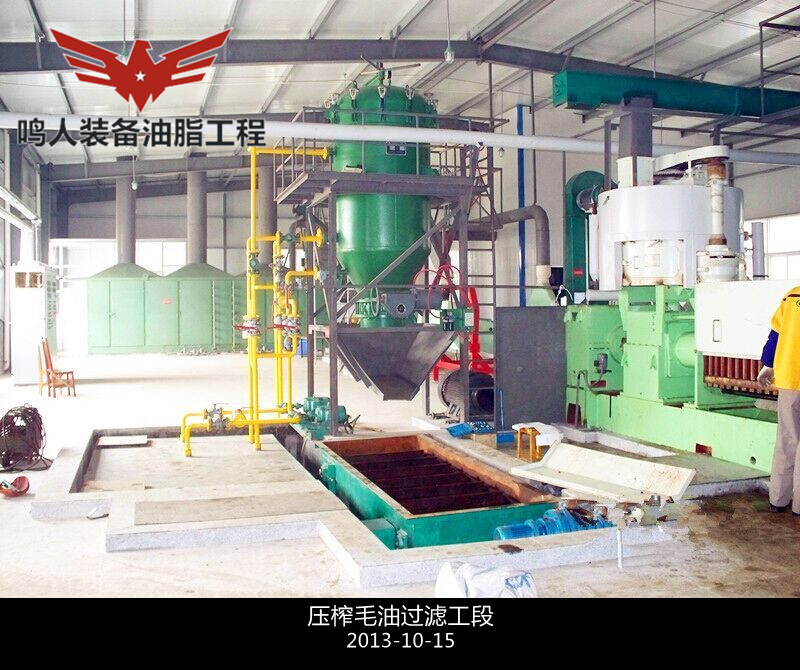 工藝流程:原料→除雜→破碎/壓胚→蒸炒調(diào)質(zhì)→壓榨→過(guò)濾→毛油